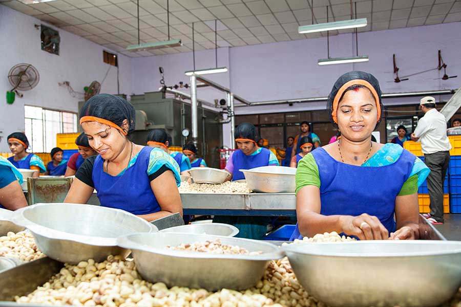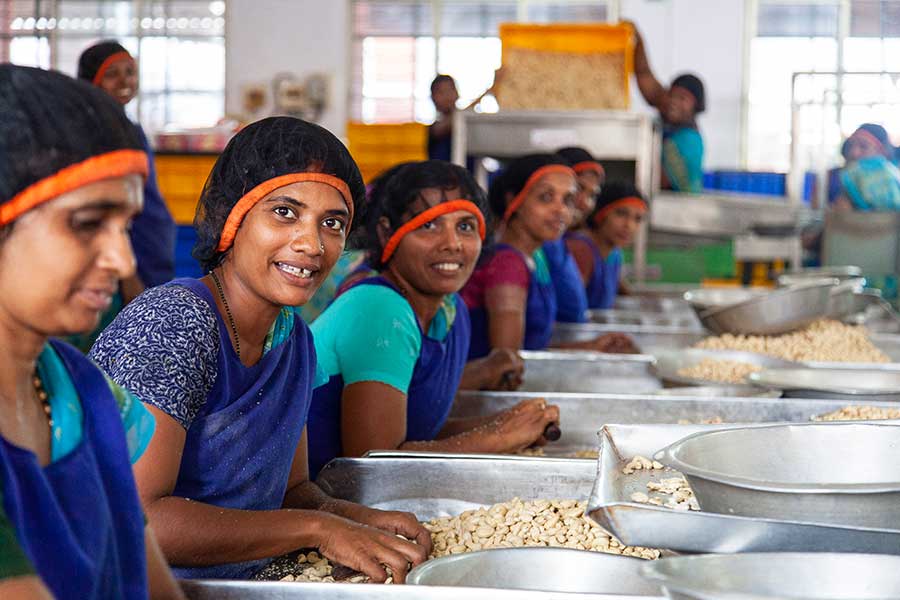 Female workers are responsible for the excellent quality of the peeled cashew kernels