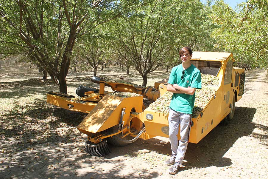 The next generation is already taking over responsibility: Nicholas Koretoff, the son of owner Steve Koretoff, with an almond harvest machine