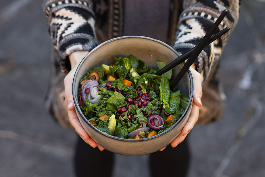 Baked butternut squash with quinoa, veggies, chickpea and currant