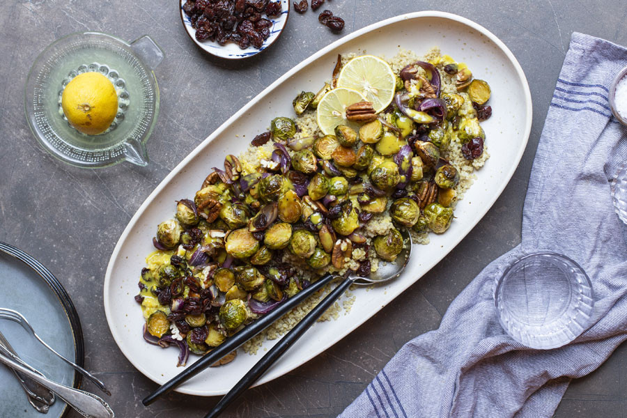 Roasted Brussel Sprouts with Quinoa and Cranberries