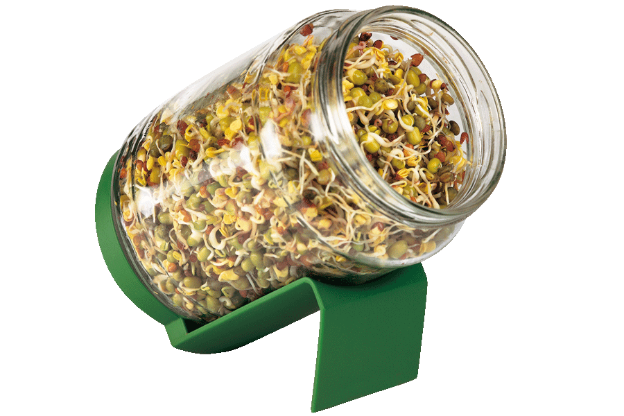 The glass germinator is a good choice especially for sprouting seeds such as alfalfa, mung beans and seed mixtures. The jar guarantees quick handling of seeds that need no fixed sprouting bottom.