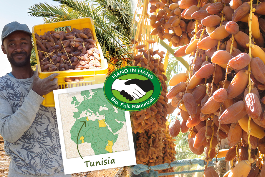 Since 2003 Rapunzel has been sourcing organically certified dates from CCF (Centre de Conditionnement de Fruits) in Tunisia. The family-run business of Slaheddine and Samia Chibani was certified pursuant to HAND IN HAND criteria in 2012. CCF has specialized many years ago in the areas of date cultivation and processing and produces only organic quality dates.