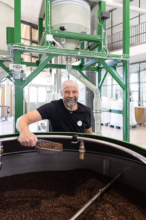 Roasting coffee beans takes time and requires a sensitive touch, which is why the roasting process is slow and gentle. It is done at low temperatures, in small quantities in a traditional drum roaster. This process enables the coffee to develop its full character, which is why good coffee is an absolute joy to drink.