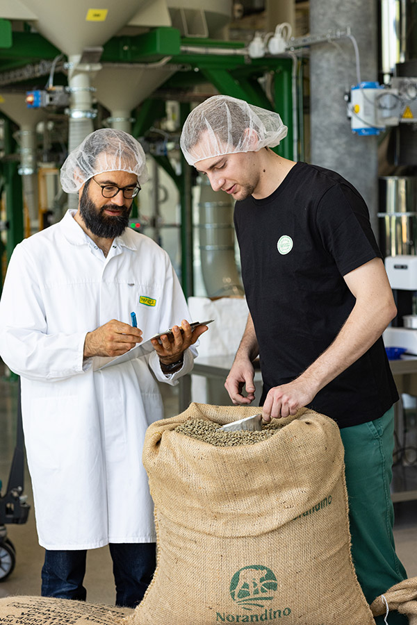 Once they have reached the Rapunzel coffee roasting facility in the Allgäu , the beans are first subjected to a rigorous visual inspection, before they enter the roaster to commence the refining process.