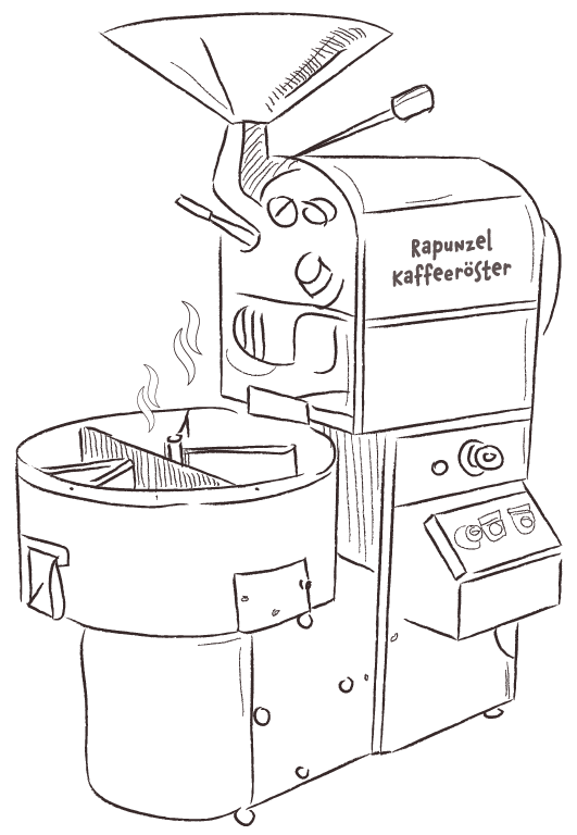 For the roasting process, the beans from our coffee heroes are shipped into the Allgäu. Here, the beans are roasted in the Rapunzel roastery. Our well-experienced roast masters pay great attention to the high quality of the raw coffee beans and see to it that the perfect roasting time and roasting temperature is found for every bean and for every coffee bean origin. Our coffee is roasted in a traditional drum roaster in a gentle, long-lasting process at low temperatures. This gives the coffee time to unfold its great flavor variety. This process is gentle on the beans, but also on the environment, because the energy that is released during the roasting process is reused through recirculation and waste heat recovery.