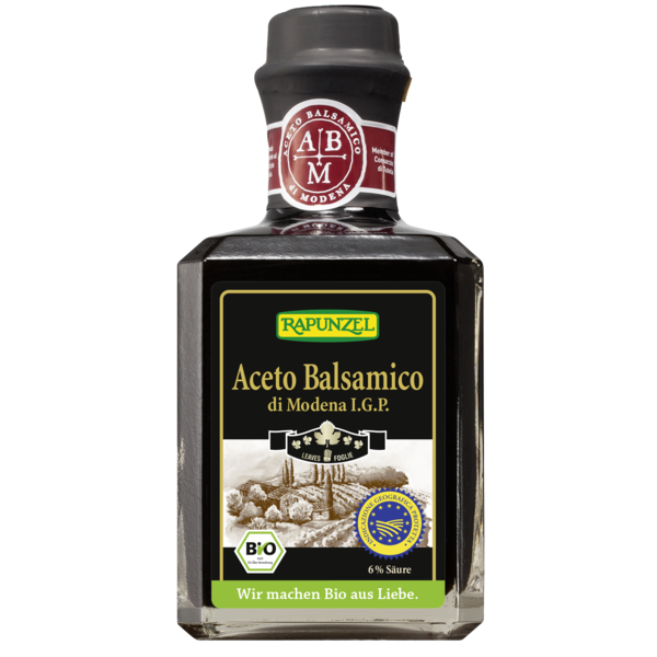 4 quality grades have been defined for Balsamic Vinegar from Modena. The labelling is done with 1 to 5 vine leaves. Rapunzel has listed a balsamic with 2 leaves (Rustico), one with 3 leaves (Speciale) and one with 5 leaves (Premium). Meaning of the leaves: Two leaves: fine, ideal for refinement, especially recommended for marinades, vegetable dishes, salads and for grilling. Three leaves: harmonious and spicy, especially recommended for roasted meat and fish, warm sauces, also for salads Five leaves: very fine, made from the best grapes, especially recommended for exclusive recipes, drizzled on parmesan, fresh fruit, ice cream