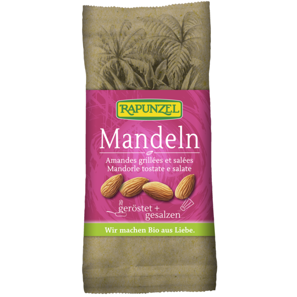 Crunchy snack! Crunchily roasted at Rapunzel, slightly salted and freshly packed! The almonds are roasted particularly carefully with hot air produced with renewable energy - perfect for the full almond aroma and the extra crunch.