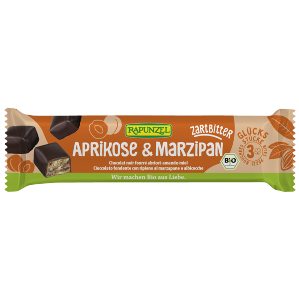 The wonderful combination of aromatic honey marzipan, crunchy, roasted almond pieces and fruity apricot gives this nibble the perfect interaction with respect to its texture and its taste. The 'dark chocolate' coating with melt-in-the-mouth bittersweet chocolate is a sensual treat for chocolate lovers.