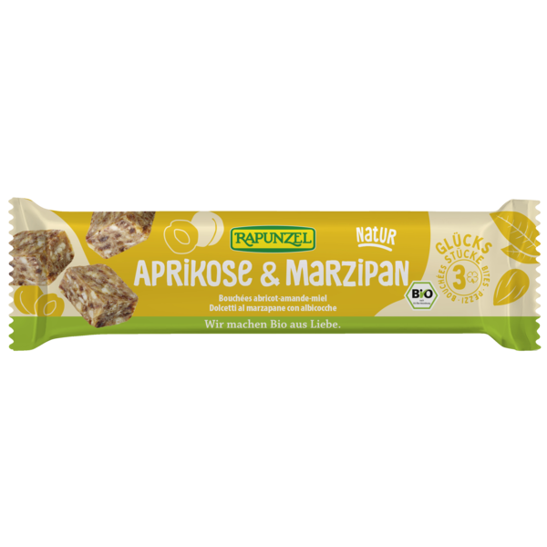 The wonderful combination of aromatic honey marzipan, crunchy, roasted almond pieces and fruity apricot gives this nibble the perfect interaction with respect to its texture and its taste.