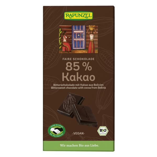 Chocolate for the connoisseur. An extra portion of tangy, aromatic cocoa from Bolivia makes this dark chocolate a tender and pure chocolate indulgence. Rapunzel chocolate stands for best Swiss manufacturing tradition and valuable, fair trade ingredients from organic cultivation. In addition to the select raw materials, the conching is the real secret behind a great chocolate. Conching is an art that fully develops the wealth of cocoa-inherent flavors in a step by step process and gives the chocolate its fineness and delicate smoothness.