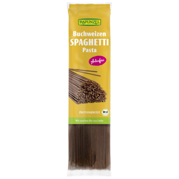 This RAPUNZEL Pasta Speciale is made from 100% ground buckwheat. Buckwheat flour and water are combined and kneaded into a dough. The dough is pressed into spaghetti that are dried subsequently.