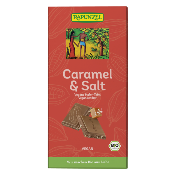 Caramel & Salt is the right choice for anyone who can't decide between sweet and savoury. The vegan bar based on wholemeal oat flour has the smooth melting texture of milk chocolate, while the salted hazelnut brittle gives it that little something extra. Rapunzel chocolate stands for best Swiss manufacturing tradition and valuable ingredients from organic cultivation. In addition to the select raw materials, the conching is the real secret behind a great chocolate. Conching is an art that fully develops the wealth of cocoa-inherent flavors in a step by step process and gives the chocolate its perfect fineness and delicate, incomparable smoothness.