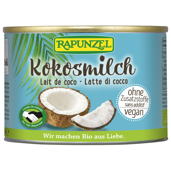 Creamy coconut milk with an intense coconut aroma. The extra share of coconut pulp (67%) gives your meals an exotic, fresh coconut flavor. Especially popular for the Asian kitchen. This coconut milk is fair trade and comes from Rapunzel's HAND IN HAND partner in Sri Lanka. The HAND IN HAND program combines fair trade with organic farming and supports local ecological and social projects. Contains no emulsifiers or stabilizers.