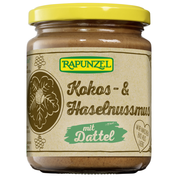 Rapunzel has been producing nut butters in a special process for nearly 50 years. Gentle roasting of the hazelnuts enhances their full aroma. After being roasted, the hazelnuts are thoroughly ground with coconut and dates. The gentle manufacturing process guarantees you a perfect taste!