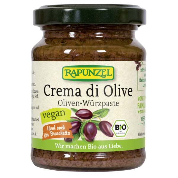 Deliciously aromatic, vegan seasoning paste made with fresh Italian Celline and Leccine olives as well as precious extra virgin olive oil. The Crema di olive is perfect for bruschetta. It is lovingly made in a family business in Italy.