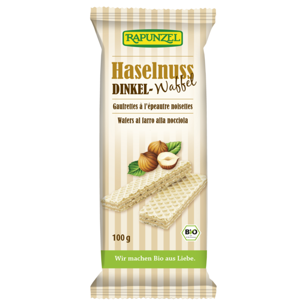 Crispy hazelnut spelt wafers with soft cream filling made with freshly roasted hazelnuts and genuine Bourbon vanilla.