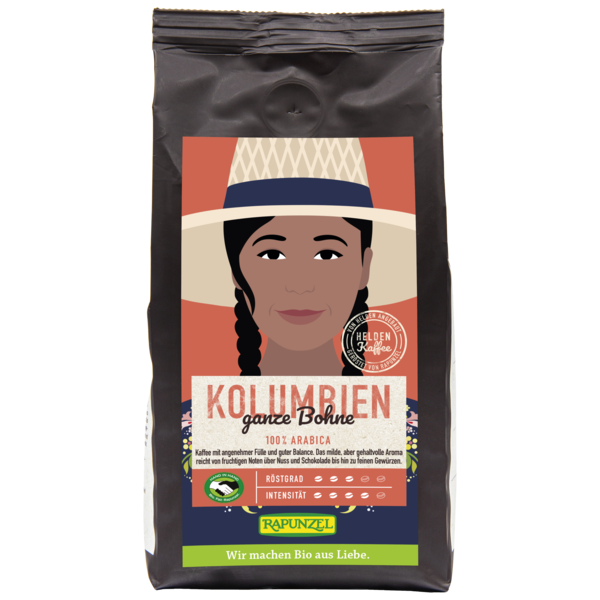 HERO COFFEE from Columbia 100% Arabica Coffee with a pleasant fullness and good balance. The mild, but full-bodied aroma includes nut and chocolate flavors as well as delicate spicy nuances. Our hero coffee was named hero coffee because it is produced by real heroes. Our heroes are the coffee farmers who create flourishing biodiversity om their farms. The cultivation of coffee in mixed culture and underneath shade trees results in stable and biodiverse ecosystems and an extraordinary high quality of coffee beans. The farmers' intense care of the coffee bushes, their thorough manual labor and their careful selection of the beans creates the finest organic and 100 % fair-trade coffee enjoyment - grown by real coffee heroes.