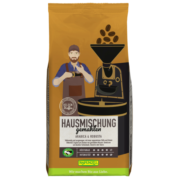 Most of Rapunzel's coffees are pure Arabica coffees. The Arabica bean is a fine, mild highland bean from coffee gardens in Honduras and Peru. We source the beans from fair-trade from our long-standing HAND IN HAND partners. Coffee farmers cultivate coffee plants there according to ecological guidelines. The fair minimum price paid by Rapunzel and the long-term supply relationships enable the coffee producers to secure their livelihoods. The Heldenkaffee Viva and Heldenkaffee Espresso varieties are blends of the fine Arabica beans and the somewhat stronger Robusta beans from Tanzania. We also source the Robusta beans from fair-trade HAND IN HAND partners. Robusta gives the coffee the slightly earthier and stronger taste for which our espresso with original Italian roast and our Heldenkaffee Viva are so appreciated.
