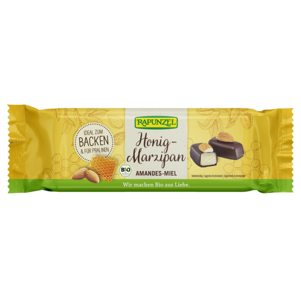 Delicious marzipan, made only with almonds and honey. Use to refine and decorate your sweet dishes, pies and cakes.