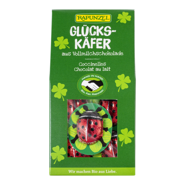 Cocoa: 36% minimum in the whole milk chocolate, with whole cane sugar Rapadura and cane sugar Cristallino, min. 19 ladybirds