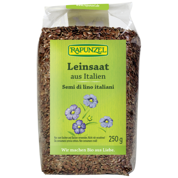 Since 01.01.2023, new legislation applies to linseed. The background to this is that, in addition to many valuable ingredients, the seeds also naturally contain so-called cyanogenic glycosides. For these, limit values have now been set for the first time and a consumption notice defined for the front of the packaging. Cyanogenic glycosides occur naturally in varying concentrations in many food plants (e.g., also in bitter almonds, apricot kernels, garden beans, etc.). They protect the plant from pests. Under certain circumstances, prussic acid (more precisely cyanide, the salt of prussic acid) can be formed from these, which leads to adverse health effects if consumed in large quantities. The content of cyanogenic glycosides varies due to many factors, such as different climatic conditions, growing periods, soil conditions, etc. A linseed that is completely free of cyanogenic glycosides does not occur in nature. Of course, at Rapunzel we also subjected the seeds to strict self-monitoring before the new legislation. With the new consumption advice “Use only for cooking and baking. Do not eat raw!” we comply with the new declaration obligation. The prussic acid evaporates during cooking and baking. It should be emphasised that nothing has changed in linseed itself since the law was changed. We recommend not to exceed 30 g of linseed per day. Linseed is not suitable for children under 13 years of age. Other products containing linseed, such as mueslis, porridges, seed mix and linseed oil are not affected by the new labelling. Of course, these articles are also subject to strict controls at Rapunzel. The limit values are always complied with for all linseed items. Linseed oil is free of cyanogenic glycosides due to the production process.