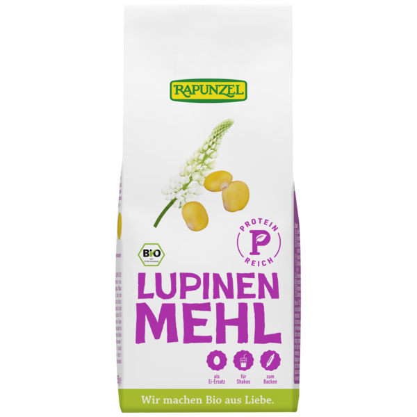 Sweet lupine seeds are dried with hot air and thoroughly ground, cultivated in Europe, packed by Rapunzel