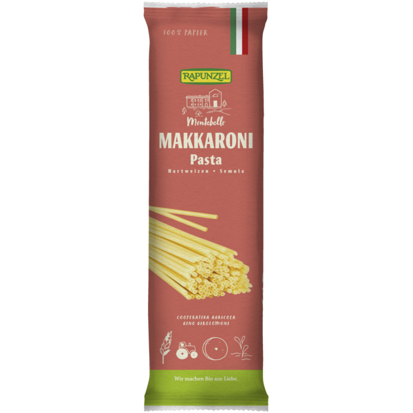 Slightly thicker, hollow noodles with the same length as spaghetti. Our Italian pastificio follows an Italian tradition and uses only the best Italian durum wheat semolina and pure spring water for the preparation of Rapunzel pasta. A slow and gentle drying process at low temperatures ensures the typical flavor and the perfect 'al dente' bite.