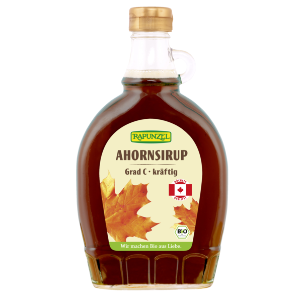 This strongly-flavored maple syrup will delight you thanks to its intense, caramel-like flavor. The grade C maple syrup is produced late in the year. The dark color and the strong, aromatic sweetness of the syrup are characteristic for this quality level. Rapunzel maple syrup has the best quality and is graded according to the original Canadian quality standards. This syrup is all natural and contains no chemical additives.