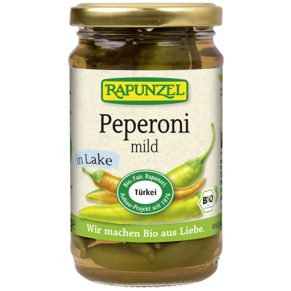 Mild, aromatic and firm to the bite hot peppers produced by organic farmers from the Rapunzel Turkey project. The combination of mild sweetness and subtle spiciness makes them a classic food in the Mediterranean kitchen. The sun-ripened peppers are processed fresh from the harvest and traditionally pickled in a fine spicy brine.