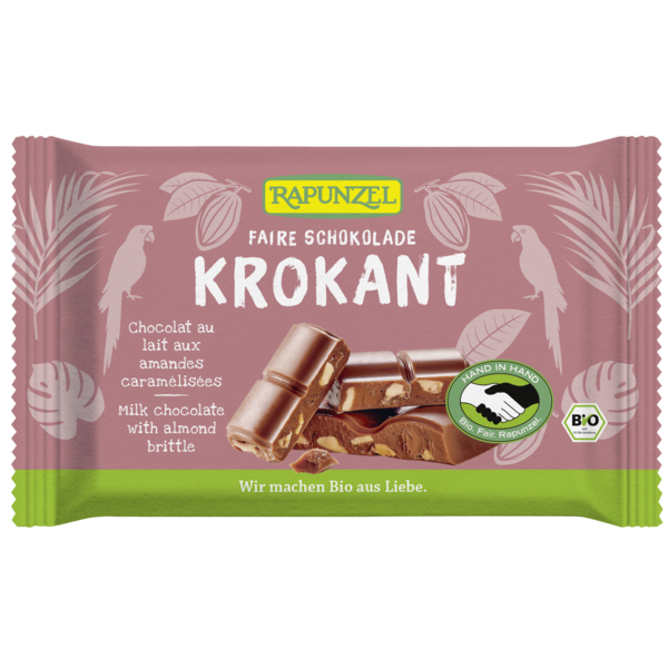 Crunchy, delicious almond brittle coated with softly melting whole milk chocolate - produced according to fair trade criteria by Rapunzel HAND IN HAND partners. In addition to the select raw materials, the conching is the real secret behind a great chocolate. Conching is an art that fully develops the wealth of cocoa-inherent flavors in a step by step process and gives the chocolate its perfect fineness and delicate, incomparable smoothness.