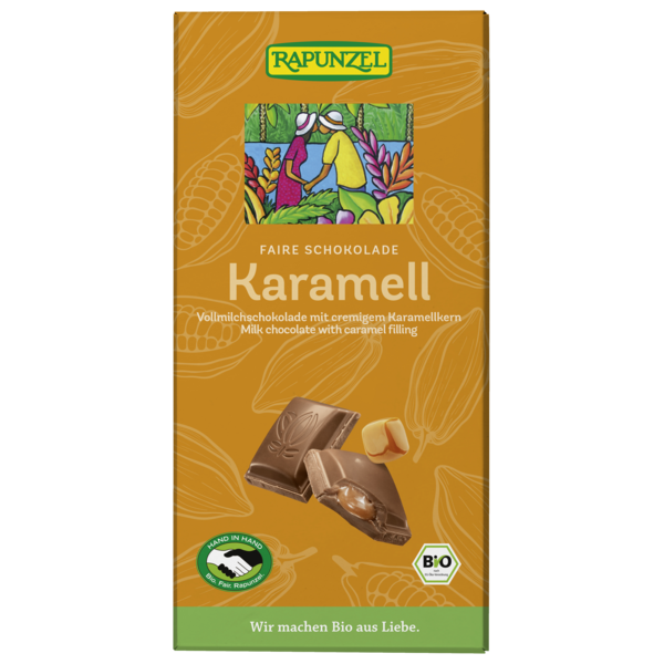 The wonderful combination of soft, slightly salted caramel filling covered with crunchy whole milk chocolate creates a unique taste experience. Fair-trade ingredients from Rapunzel HAND IN HAND partners. In addition to the valuable raw materials, the conching is the real secret behind a great chocolate. Conching is an art that fully develops the wealth of cocoa-inherent flavors in a step by step process and gives the chocolate its fineness and delicate, incomparable smoothness.