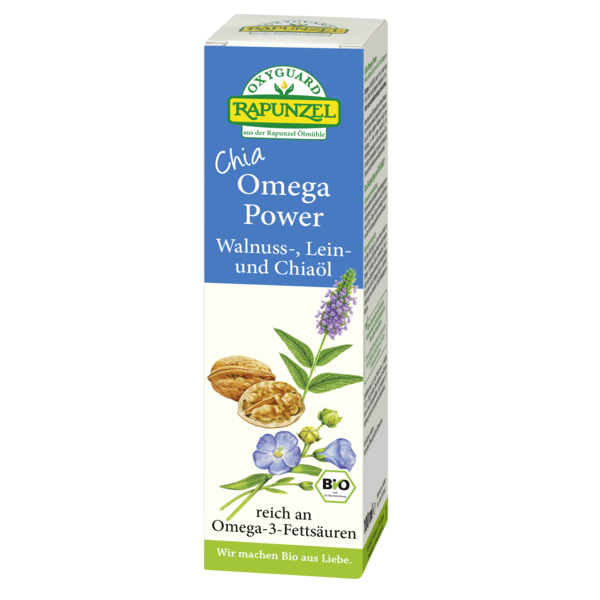 Walnut and linseed oil are carefully pressed using the OXYGUARD® process. The entire processing from the opening of the nut shells through the pressing and filling of the oil is done under exclusion of light, oxygen and elevated temperature. The mixing with the Chia oil and bottling of the finished product also takes place under total OXYGUARD® protection.