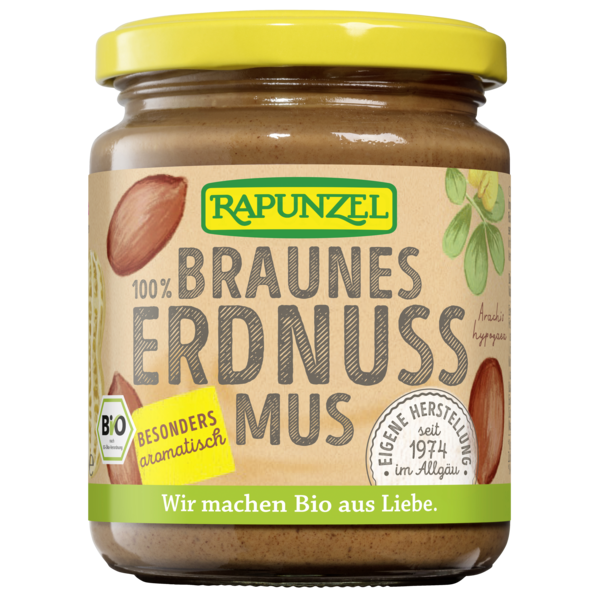 Rapunzel has been producing nut butter since 1974. Roasting the peanuts enhances their full aroma. After being roasted, the nuts are finely ground. The gentle manufacturing process guarantees you a unique taste!
