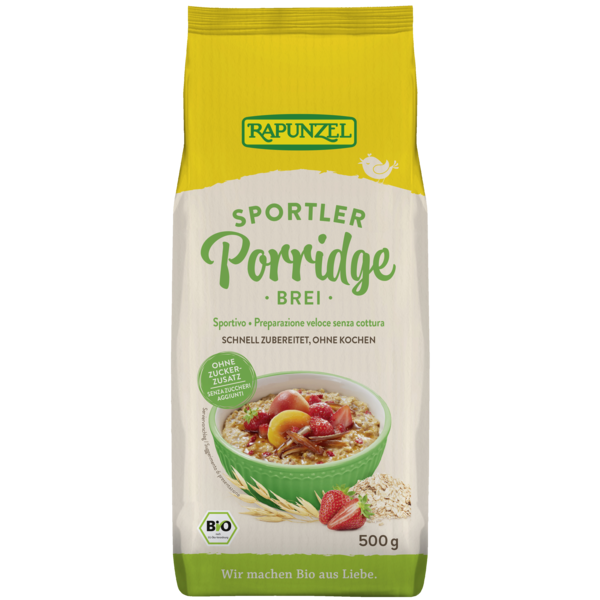 The Porridge Sport is a great performer! The combination of valuable cereals and fruits ensures the availability of sugars and carbohydrates: quickly available glucose, slower-acting sucrose and cereal starch chains that serve as energy reservoirs. The Porridge Sport is high in proteins and contains valuable minerals. With no added sugar (contains naturally occuring sugars).