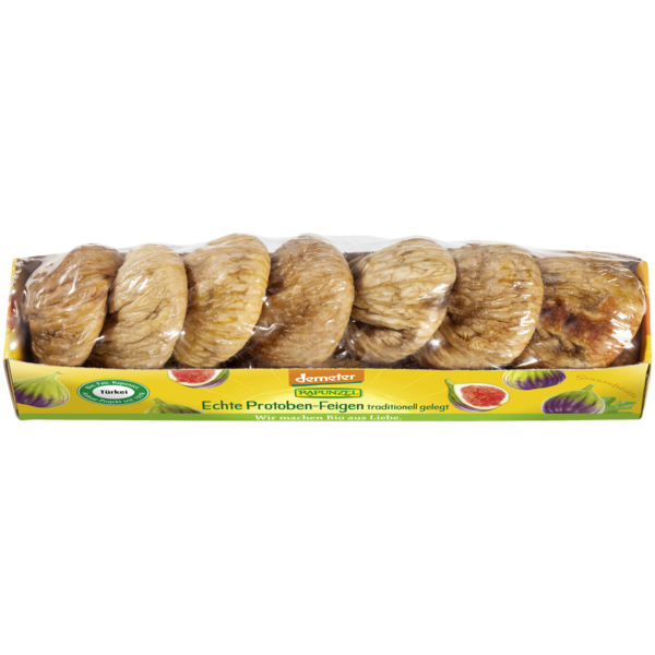 Particularly sweet, aromatic demeter figs from controlled biodynamic agriculture. The sun-spoilt fruits are cultivated on the steep slopes in the Turkish Aydin region and are produced in the Rapunzel Turkey project. The figs are layered in a traditional pattern that resembles the slated roofs of the Aydin region. Therefore they are called Protoben figs.