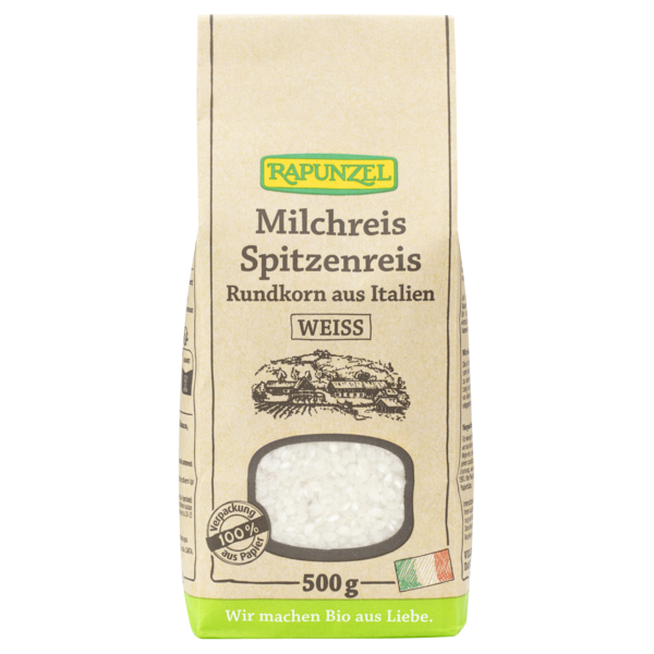 Add 250 g milk rice into 1 L of milk and bring to a boil. Let simmer for approx. 20-25 minutes at low heat with closed lid. Tip: Substitute part of the milk with Rapunzel coconut milk and add Rapunzel Bourbon vanille powder at the end.