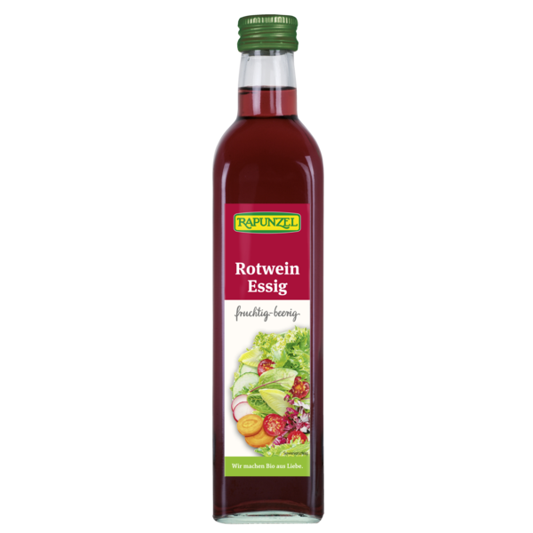 Exquisite Italian red wine gives this aromatic vinegar its character. Its fruity aroma with a slight raspberry note is particularly suited for the refinement of various dishes. Rapunzel red wine vinegar is characterized by its naturalness and the gentle manufacturing process. Made from non-sulphurized red wine it matures in wood barrels and is not heated.