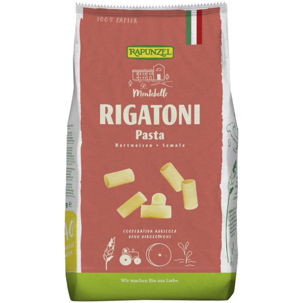 Tube-shaped noodles, great for taking up sauce. Our Italian pastificio follows an Italian tradition and uses only the best Italian durum wheat semolina and pure spring water for the preparation of Rapunzel pasta. A slow and gentle drying process at low temperatures ensures the typical flavor and the perfect 'al dente' bite.