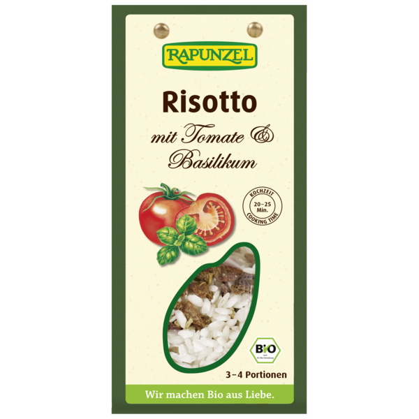 Best quality Risotto rice with savory dried tomatoes. Ready to use with fine basil, Mediterranean spices and vegetable broth. Prepare a wonderful, aromatic, typical Italian dish in only 20-25 minutes. With its appealing package. Ideal for every Italian gift basket.