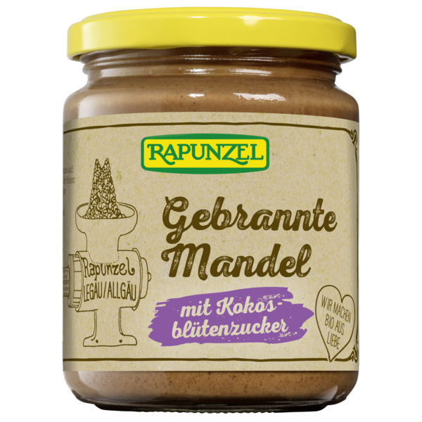Rapunzel has been producing nut butters in a special process for nearly 50 years. Gentle roasting of the almonds enhances their full aroma. After being roasted, the almonds are coarsely ground with the coconut palm sugar and the fine spices. The gentle manufacturing process guarantees you a unique taste!