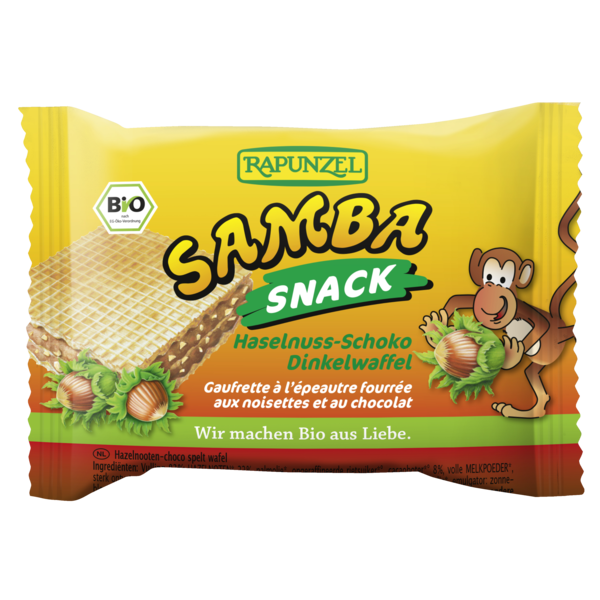 Crunchy, fresh waffles filled with hazelnut-chocolate cream - a crispy snack for young and old. 26% hazelnuts make the creamy Samba filling so delicious and aromatic. Refined with genuine Bourbon vanilla.