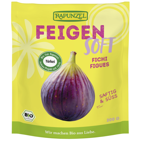 Sweet, juicy and particularly aromatic figs from the Rapunzel Turkey project. The sun-drenched fruits are growing on the steep slopes in the Aydin region and are cultivated with a lot of care from the project farmers. The dried figs are gently processed with water vapor, making them juicier and fruitier than sun-dried figs.