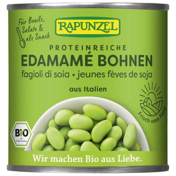 traditional Asian appetizer or snack, delicious in salads, bowls, as puree, in soups or in stews. The cooking process changes the colour of the soybeans from bright green to beige. Due to their natural starch, the brine can become solid, simply rinse the beans before use.