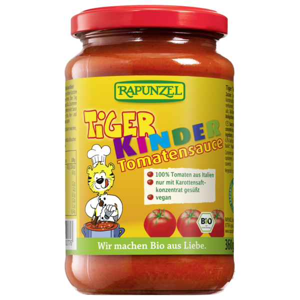 Fruity, mild tomato sauce for young and old! Sun-ripened Italian tomatoes give this sauce its intense flavor. More than 1 kg harvest-fresh tomatoes per jar as well as pure carrot juice concentrate give this sauce its natural sweetness. Especially mild flavor. The tomatoes used for this tomato sauce are cultivated 100% in Italy. Rapunzel supports the breeding and preservation of seed-fast organic seeds, e.g. the tomato variety 'Mauro Rosso'.