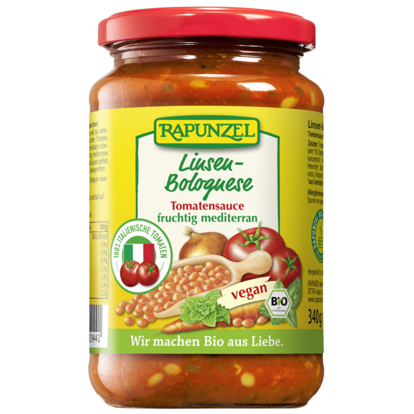 The red lentils vegan alternative to Bolognese sauce! It is the perfect complement or alternative to the soy version. The Bolognese sauce is made in Italy from sun-ripened, freshly harvested tomatoes, fine red lentils and aromatic herbs. It tastes wonderfully fruity and Mediterranean and tastes great with pasta, chilli, rice, vegetable dishes and in lasagne. Simply heat briefly and enjoy. The tomatoes used for this tomato sauce are cultivated 100% in Italy. Rapunzel supports the breeding and preservation of seed-fast organic seeds, e.g. the tomato variety 'Mauro Rosso'.