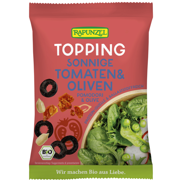 Tasty topping - the Mediterranean extra! This mix with wonderfully aromatic, sun-ripened olive rings and fruity tomato pieces from Italy conjures up a Mediterranean feeling in your dish in no time at all. It also provides plenty of fibre and is a source of plant-based protein. Just get topping & enjoy!