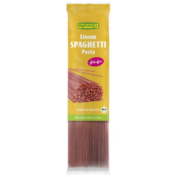 Rapunzel yellow lentil spaghetti are made from 100% yellow lentils. The legume provides a mild nutty flavour and supplies many valuable proteins and dietary fibres. They are the ideal gluten-free alternative to cereal pasta.