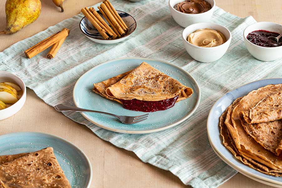 The pancakes are very tasty with Rapunzel Samba hazelnut, almond butter or other Rapunzel creams, jam or fruit compotes.