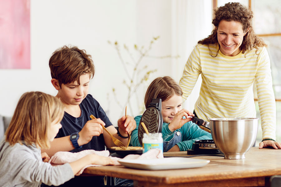 Coat the waffle iron with coconut oil and pour batter over. Bake waffles for about 3 - 5 min. till golden brown. Serve warm with almond butter, powdered sugar, maple syrup and coconut blossom syrup.
