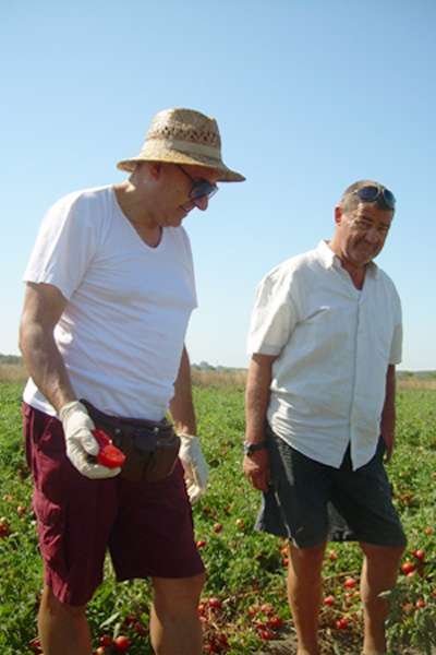 The name giver: breeder Mauro Buonfiglioni (left) with tomato farmer T. Orfanelli in the field